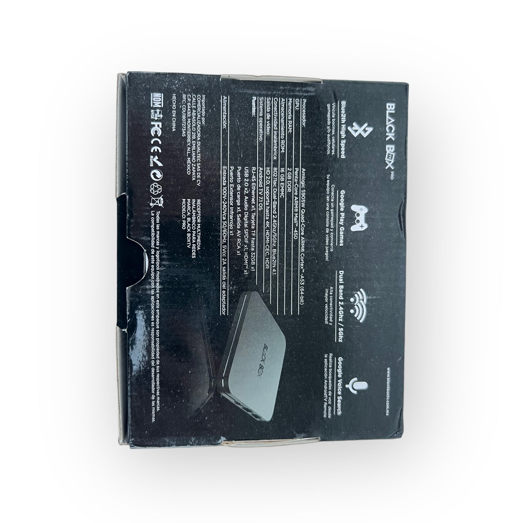 Ya sea para ver tus películas favoritas, jugar juegos o simplemente disfrutar de contenido de internet en la mejor calidad posible, la Black Box Pro es la elección ideal para mejorar tu experiencia de entretenimiento en casa. Su diseño compacto y elegante se adapta perfectamente a cualquier configuración de entretenimiento, y su potente hardware garantiza una reproducción fluida y rápida.