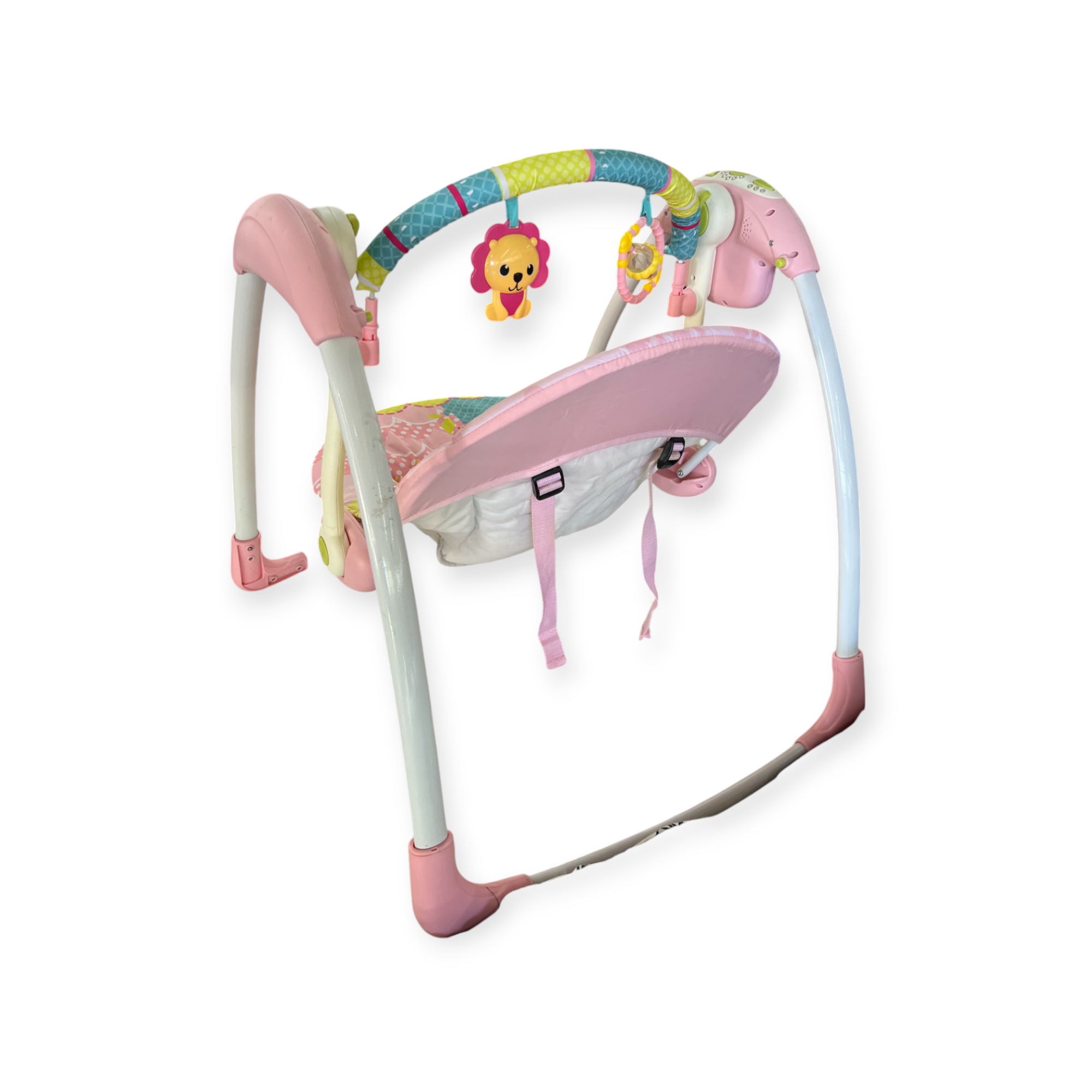 El columpio Mimo ofrece entretenimiento, relajación y seguridad para tu bebé con 5 velocidades de balanceo ajustable hacia el frente y atrás, módulo electrónico con música y control de volumen y tiempo. Asiento acolchonado, cinturón de seguridad de 5 puntos y juguetero removible. Es plegable para un almacenamiento y transporte fácil. Incluye cargador.