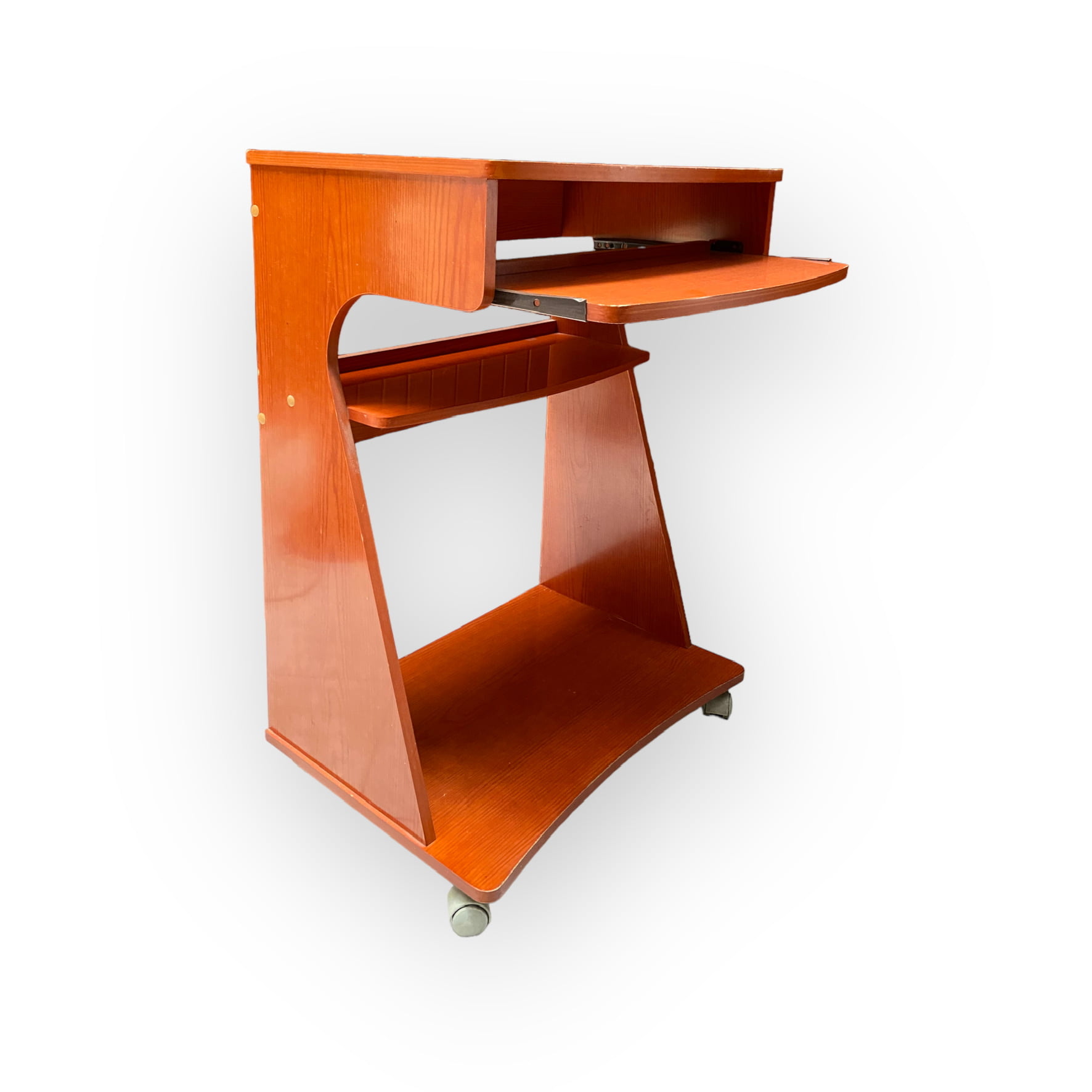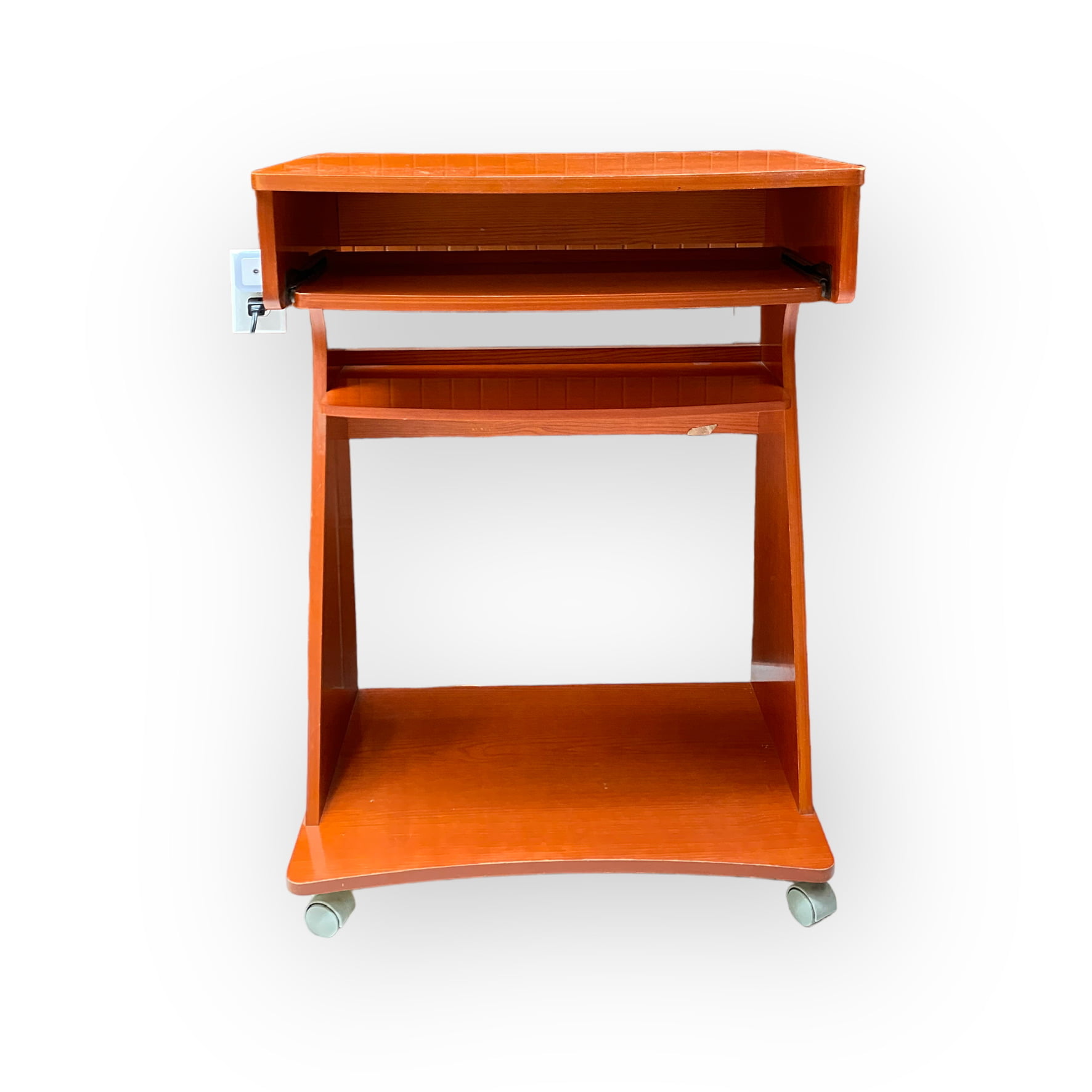 Este escritorio móvil de diseño ahorra-espacio es ideal para entornos de trabajo dinámicos, ofreciendo una bandeja deslizable para teclado y ruedas para facilitar su movimiento y adaptabilidad.